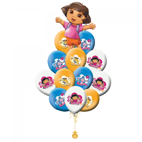 Букет «Даша и Башмачок» состоящий из 16 разноцветных воздушных латексных шаров с рисунками героев мультфильма «Даша и Башмачок» и 1 фольгированной фигуры Даши станет запоминающимся подарком вашему ребенку, подарит ярких эмоций и море позитива.