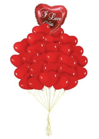 Объемная композиция "Эффектное признание" из 30 латексных сердец и 1 большого фольгированного сердца с принтом "Я тебя люблю".