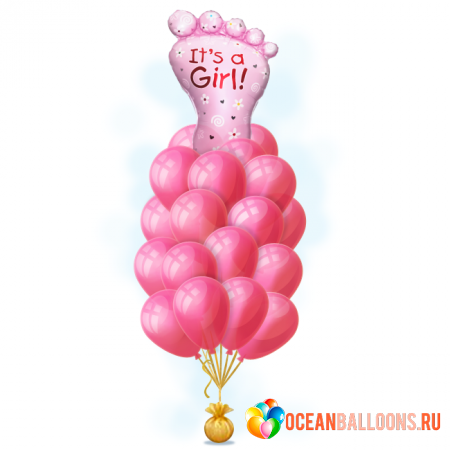 Букет "Ножка новорожденной малышки", состоящий из 10 латексных воздушных шаров и большой фольгированной фигуры, сделает незабываемым день рождения Вашей малышки!