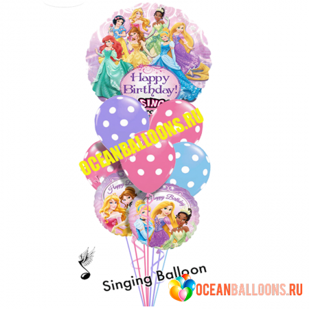 Букет "Подарок Принцессе", состоящий из 20 латексных шаров, 2 фольгированных и большого поющего шара, сделает Вашу принцессу самой счастливой на свете!