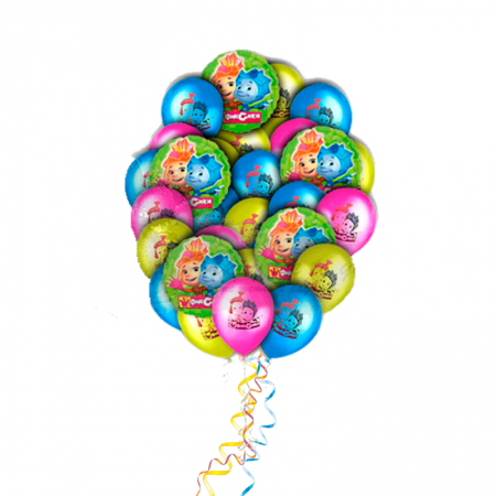 Букет "Фиксики", состоящий из 15 воздушных шаров с рисунком и 4 фольгированных шаров-кругов, подарит радостные эмоции юному любителю мультиков!
