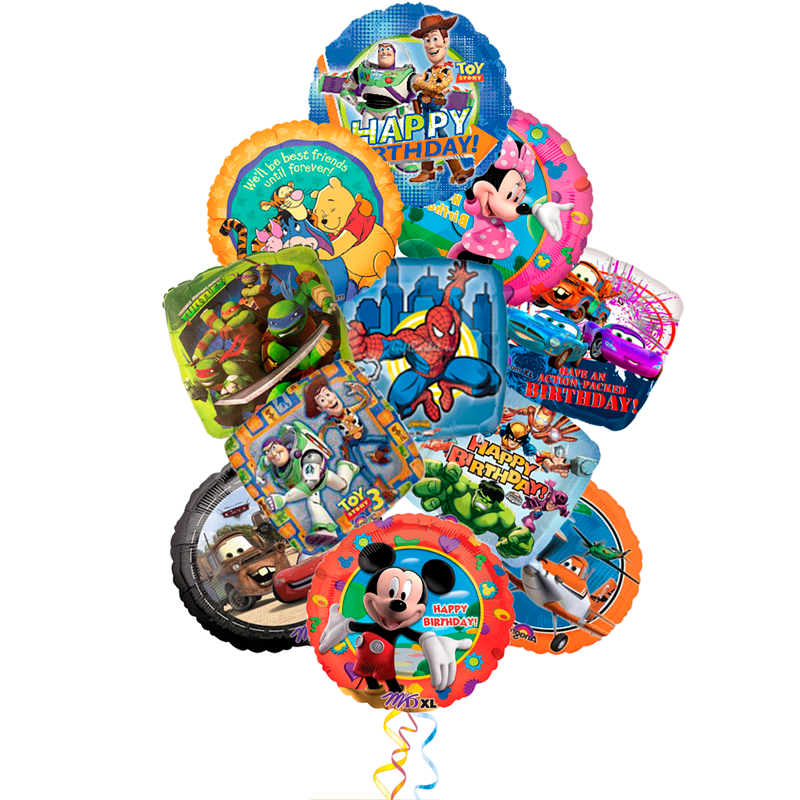 Букет "Герои мультфильмов", состоящий из 11 фольгированных шаров с изображением героев любимых мультфильмов, подарят море радости, станут невероятно красивым и очень приятным сюрпризом для Вашего ребенка! Ваш ребенок будет невероятно счастлив после такого подарка!