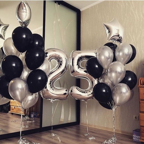 - Воздушные шары черного и серебреного цвета (металлик) - 20шт.