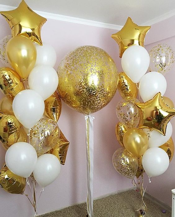Готовое решение «Золотое и белое» в интернет-магазине OCEAN BALLOONS. Заказать с доставкой! Тел.: +7-926-392-39-88.
