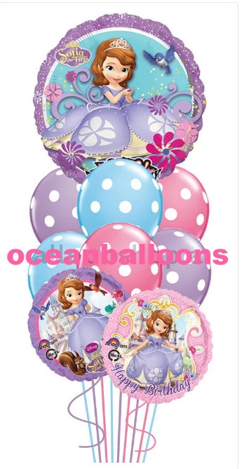 Букет из воздушных шаров «Музыкальная Принцесса София» подарит замечательное настроение Вашей дочке и позволит ей почувствовать себя принцессой. Композиция состоит из 15 обработанных воздушных шаров в горошек, большого поющего шара и 2-х круглых фольгированных шаров!