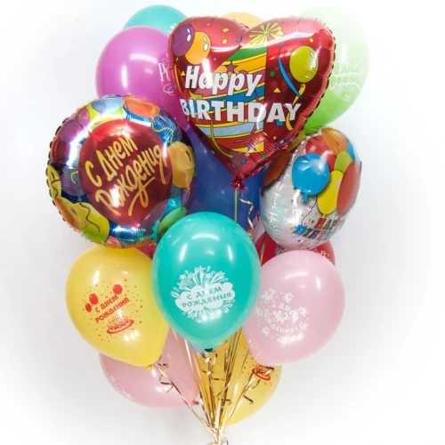- Латексные шарики с днем рождения 17шт;