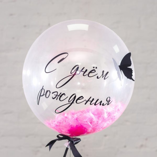 Шар с перьями и надписью с Днем Рождения в интернет-магазине OCEAN BALLOONS. Заказать с доставкой! Тел.: +7-926-392-39-88.