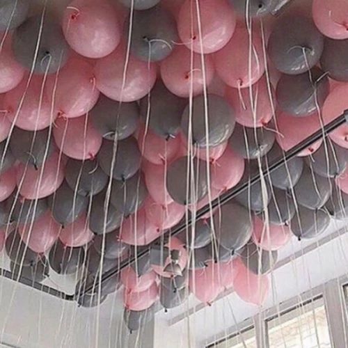Гелиевые шарики под потолок серый и розовых гамме в интернет-магазине OCEAN BALLOONS. Заказать с доставкой! Тел.: +7-926-392-39-88.